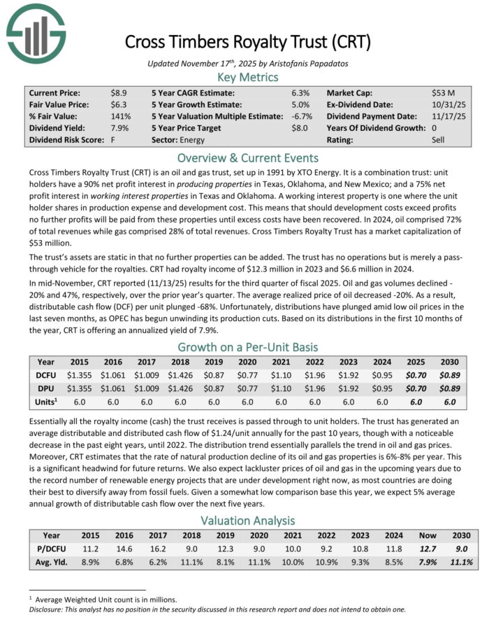 - Too High Dividend Yield #10: Cross Timbers Royalty Trust (CRT)