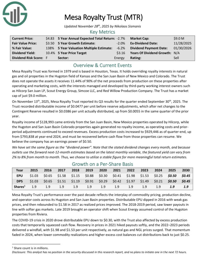 - Too High Dividend Yield #7: Mesa Royalty Trust (MTR)