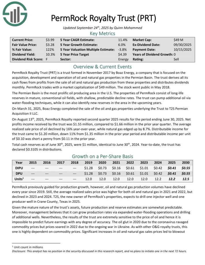 - Too High Dividend Yield #8: PermRock Royalty Trust (PRT)
