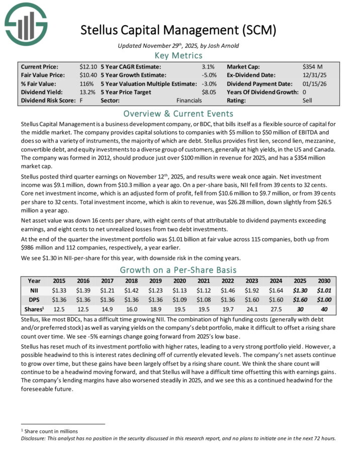 - Too High Dividend Yield #6: Stellus Capital (SCM)