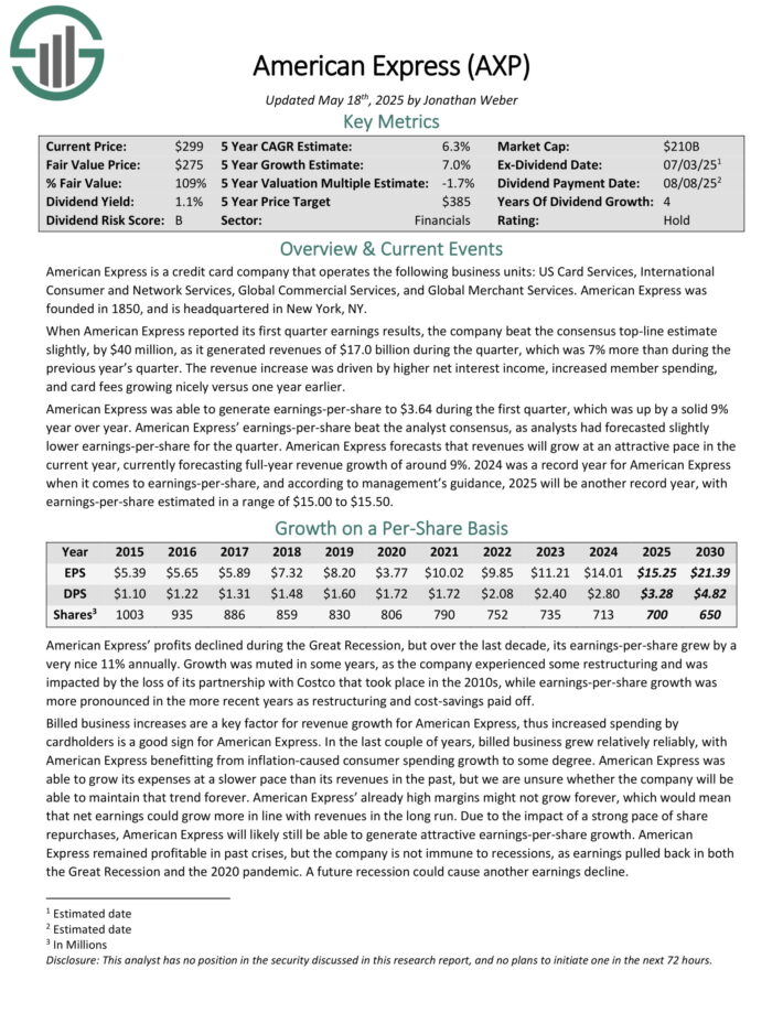 Click here to download our most recent Sure Analysis report on AXP (preview of page 1 of 3 shown below):