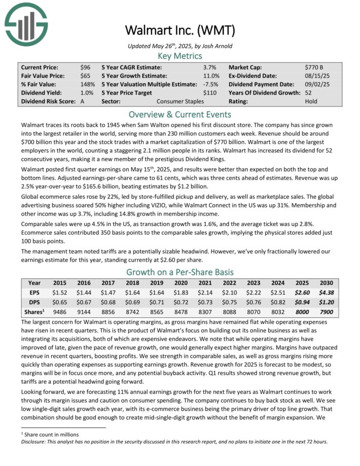 Walmart posted first quarter earnings on May 15th, 2025, and results were better than expected on both the top and bottom lines. Adjusted earnings-per-share came to 61 cents, which was three cents ahead of estimates. Revenue was up 2.5% year-over-year to $165.6 billion, beating estimates by $1.2 billion.