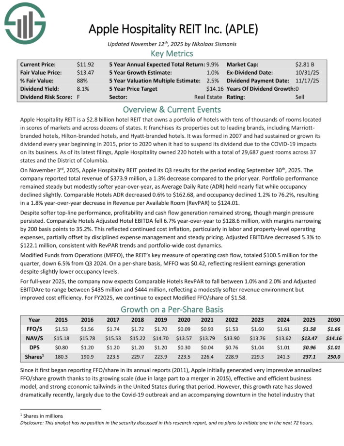 Click here to download our most recent Sure Analysis report on APLE (preview of page 1 of 3 shown below):