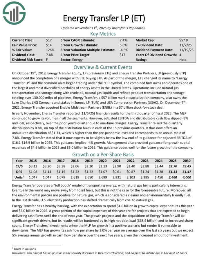 - Undervalued High Dividend Stock #10: Energy Transfer LP (ET)