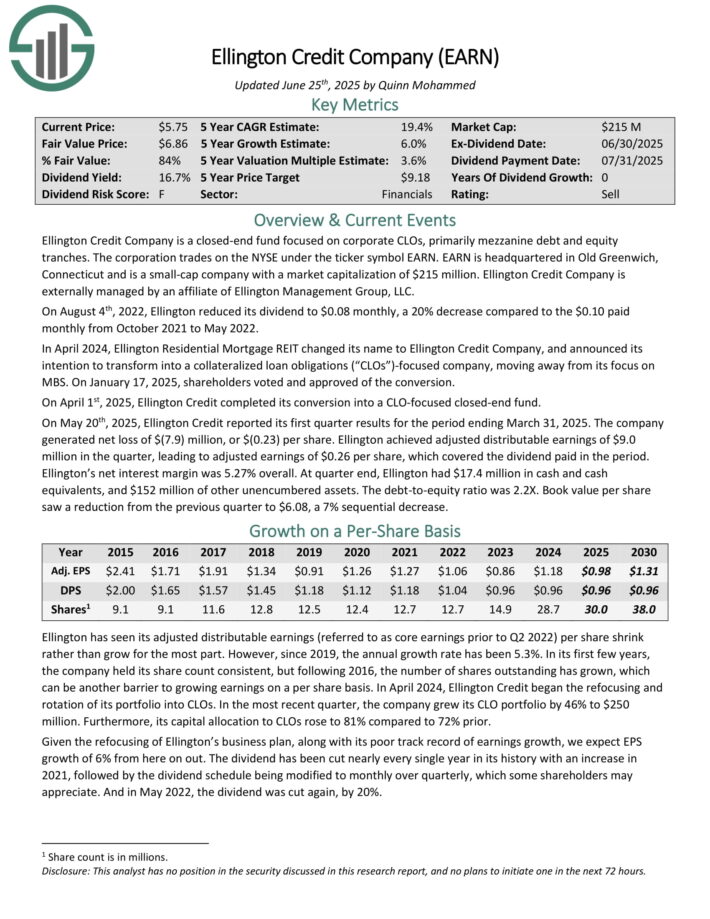 - Undervalued High Dividend Stock #4: Ellington Credit Co. (EARN)