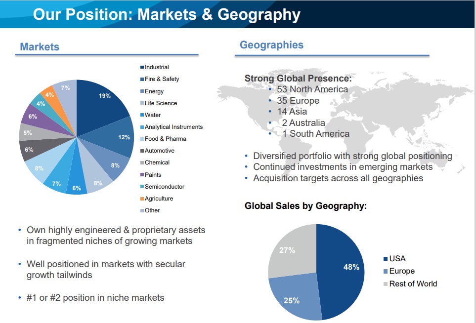 Its end markets are primarily Chemicals and Advanced Materials, and Pharma, with Diagnostics and Clinical, Environmental & Forensics, Food, and Academia & Govt making up the remainder.